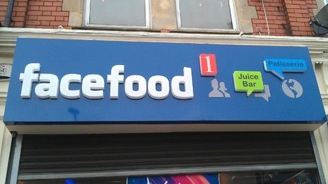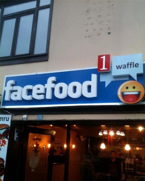 Foto real! De fato, existem mesmo alguns restaurantes com o nome de Facefood que usam marcas semelhantes ao do Facebook. Resta saber se a comida é boa!