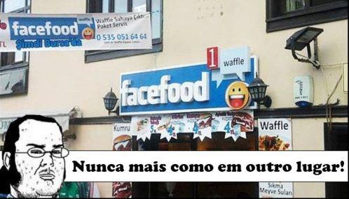 Na primeira semana de janeiro de 2013, nos deparamos com a fotografia abaixo. Aparentemente, a imagem sugere a existência de um restaurante chamado “Facefood” e que a sua fachada seria uma brincadeira em cima do layout da rede social Facebook.
