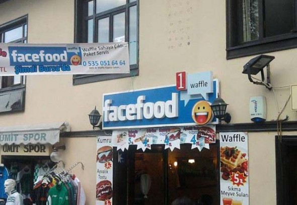 Outros tiveram a mesma ideia. Parece que a ideia de usar em um restaurante um nome e um layout parecidos com os da rede social de Mark Zuckerberg não é uma exclusividade turca. Vários outros estabelecimentos foram de carona no sucesso do Facebook: